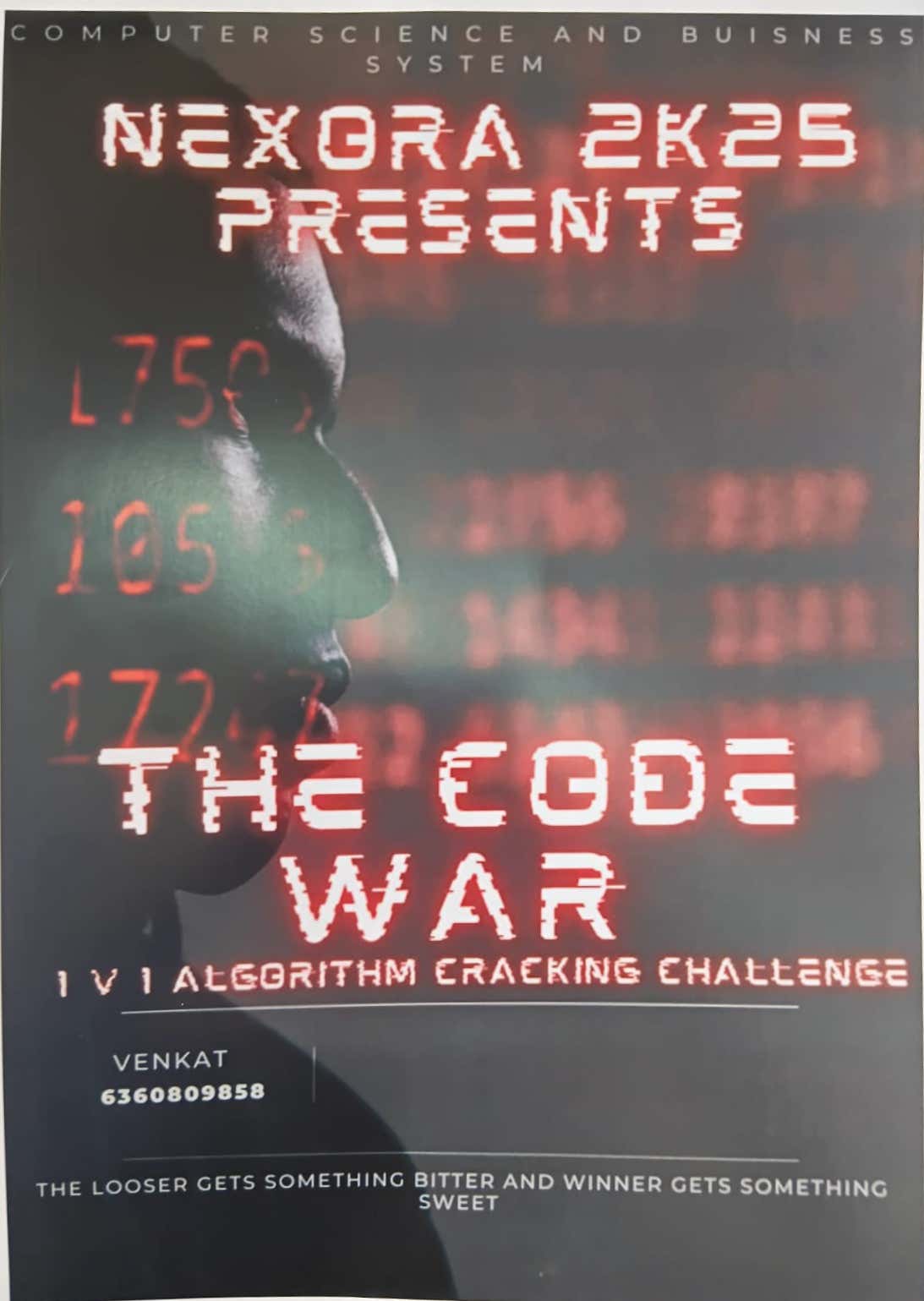 Register ClosedStep into the arena of logic and speed. The Code of War is a 1 vs 1 coding face-off where only the sharpest minds survive! Competitors will go head-to-head in algorithmic challenges that test their problem-solving skills, logic-building ability, and speed under pressure. It’s not just about writing code — it’s about writing the smartest code, the fastest.
